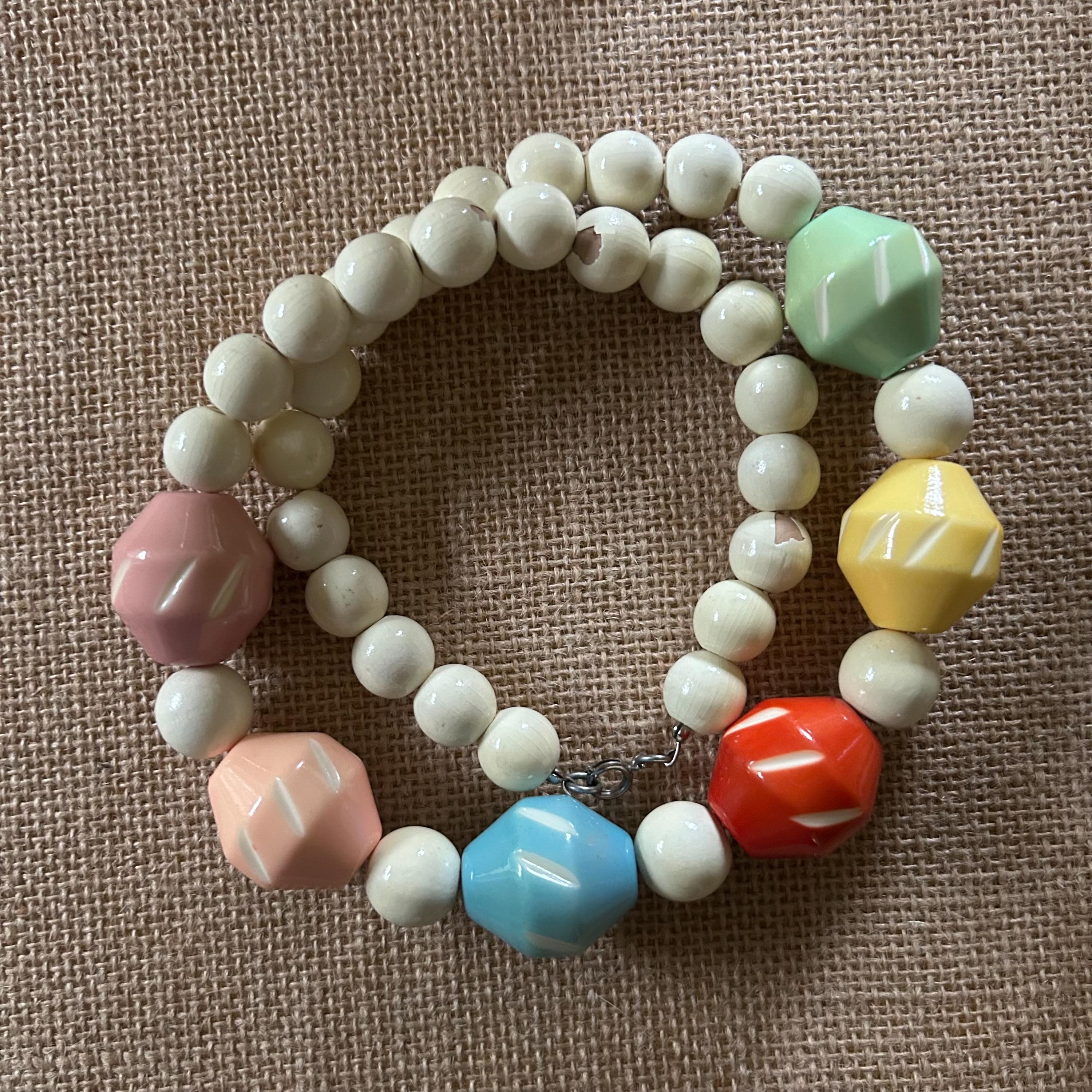 Add a pop of midcentury color to your outfit with this cheerful vintage bead necklace from Betty and ZZ Vintage!