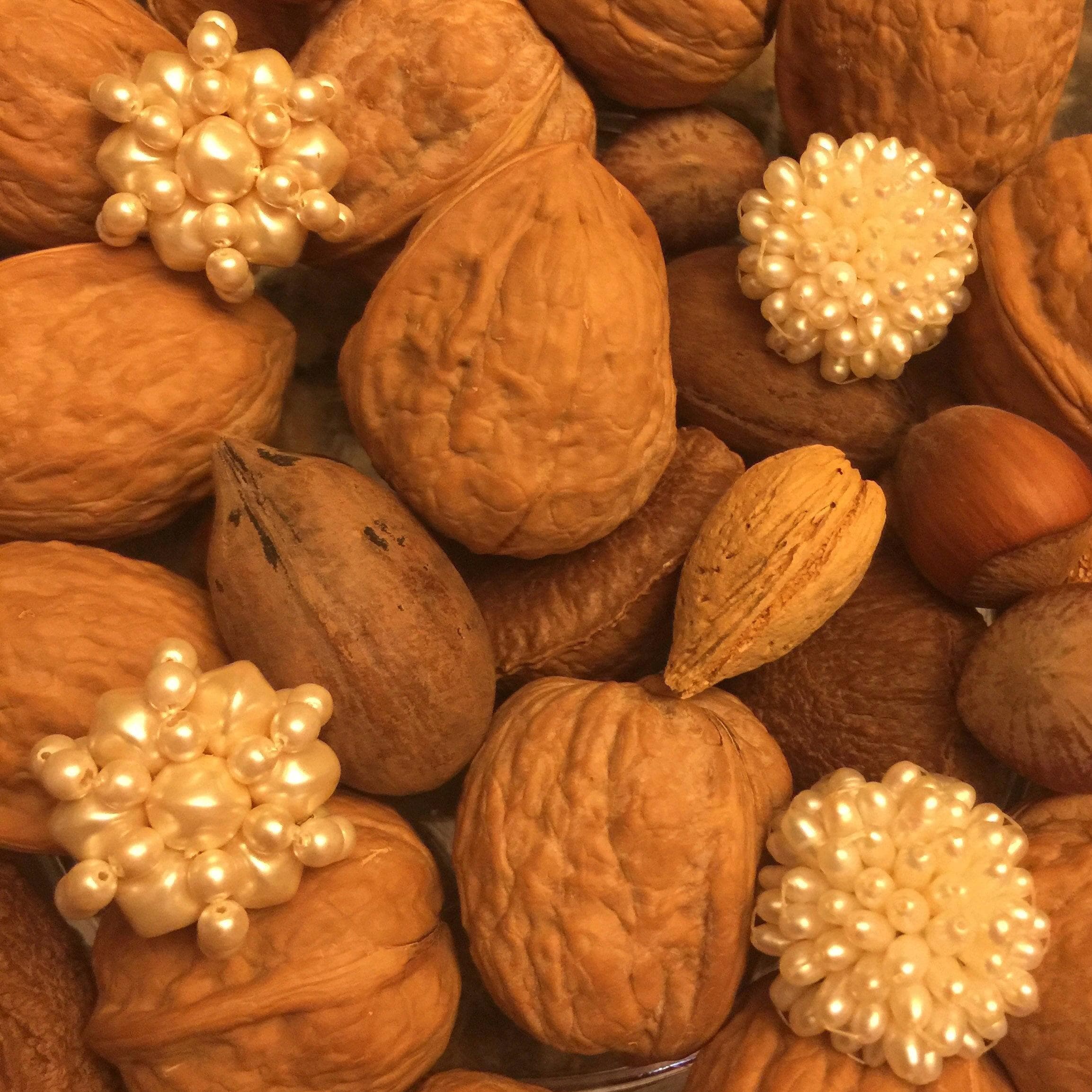 Dramatic clustered pearl clip earrings in excellent vintage condition. Dresses up any ensemble and makes a dramatic statement at your next holiday or other event. Costume jewelry. Gold finish. One inch in diameter. Two pairs available (please select left or right).